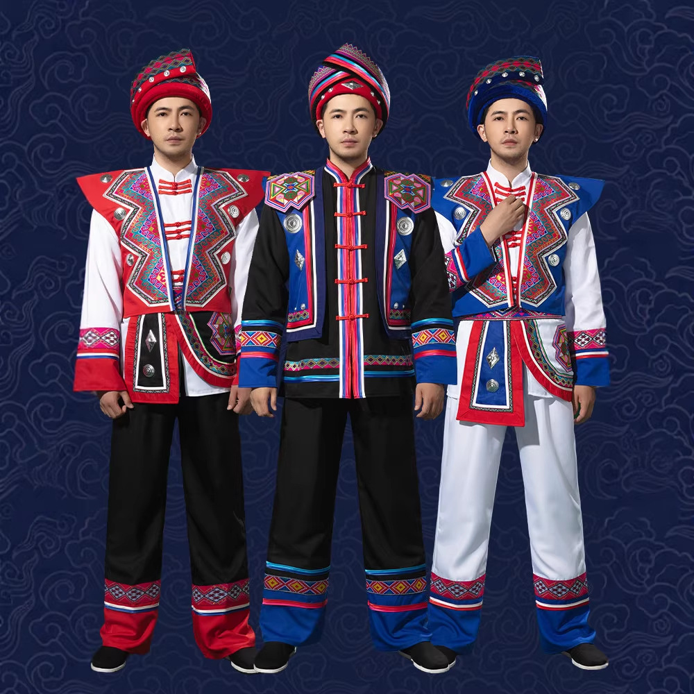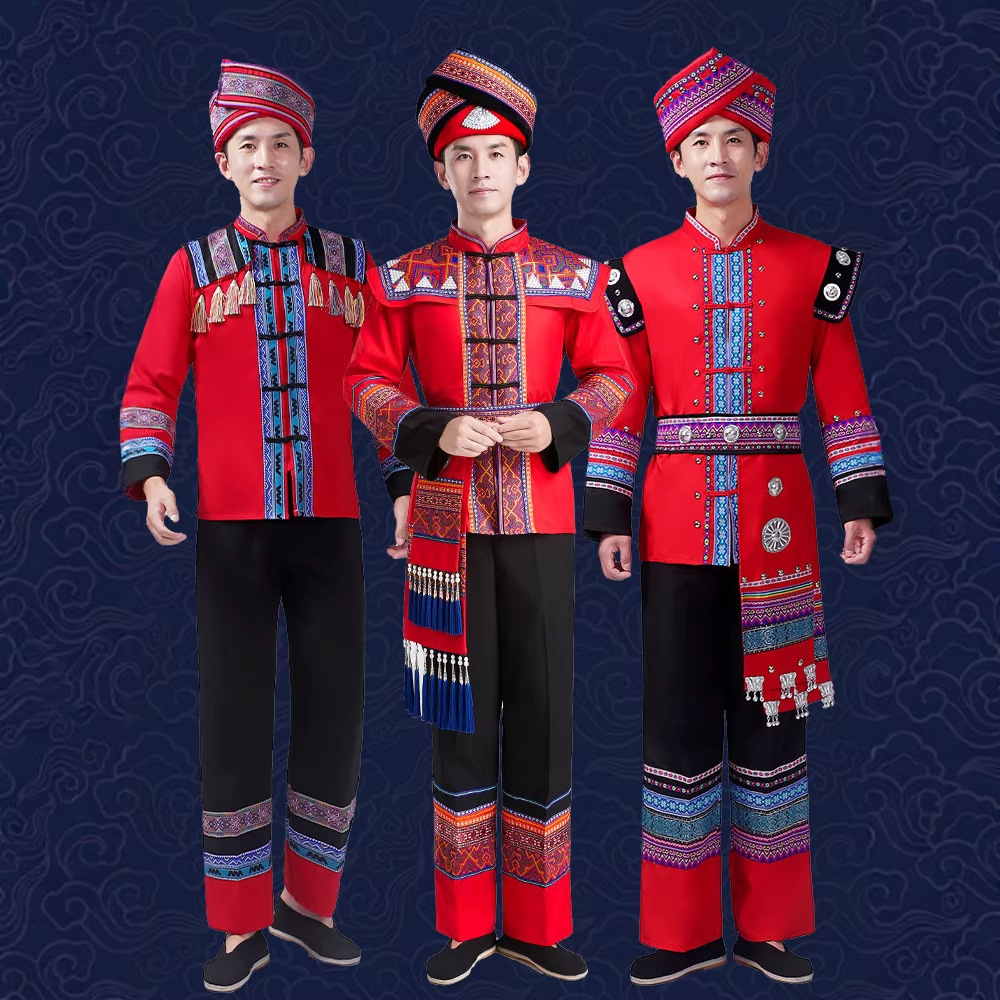 56个少数民族服装男成人广西壮族瑶族苗族三月三舞蹈演出服套装