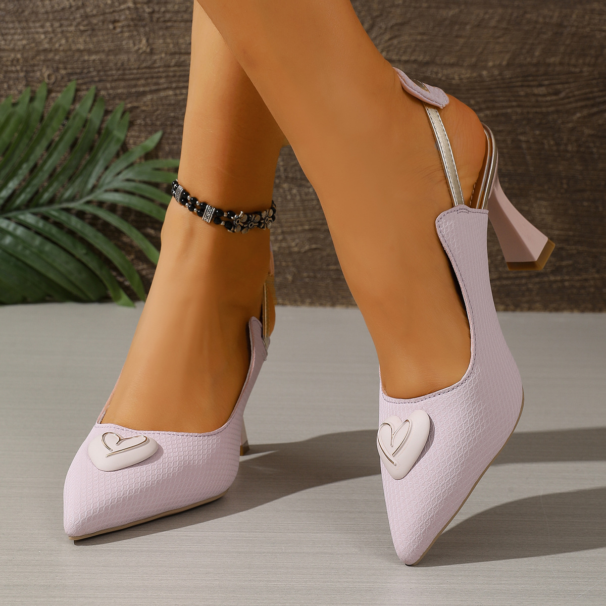 2026春夏新款高端仙女风爱心装饰尖头后空系带气质细跟高跟鞋凉鞋