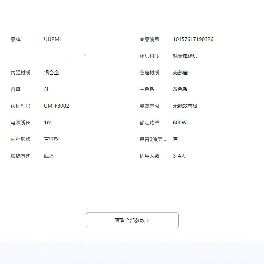| 货号 | 微电脑电饭煲UM-FB002 | 容量 | 3L |