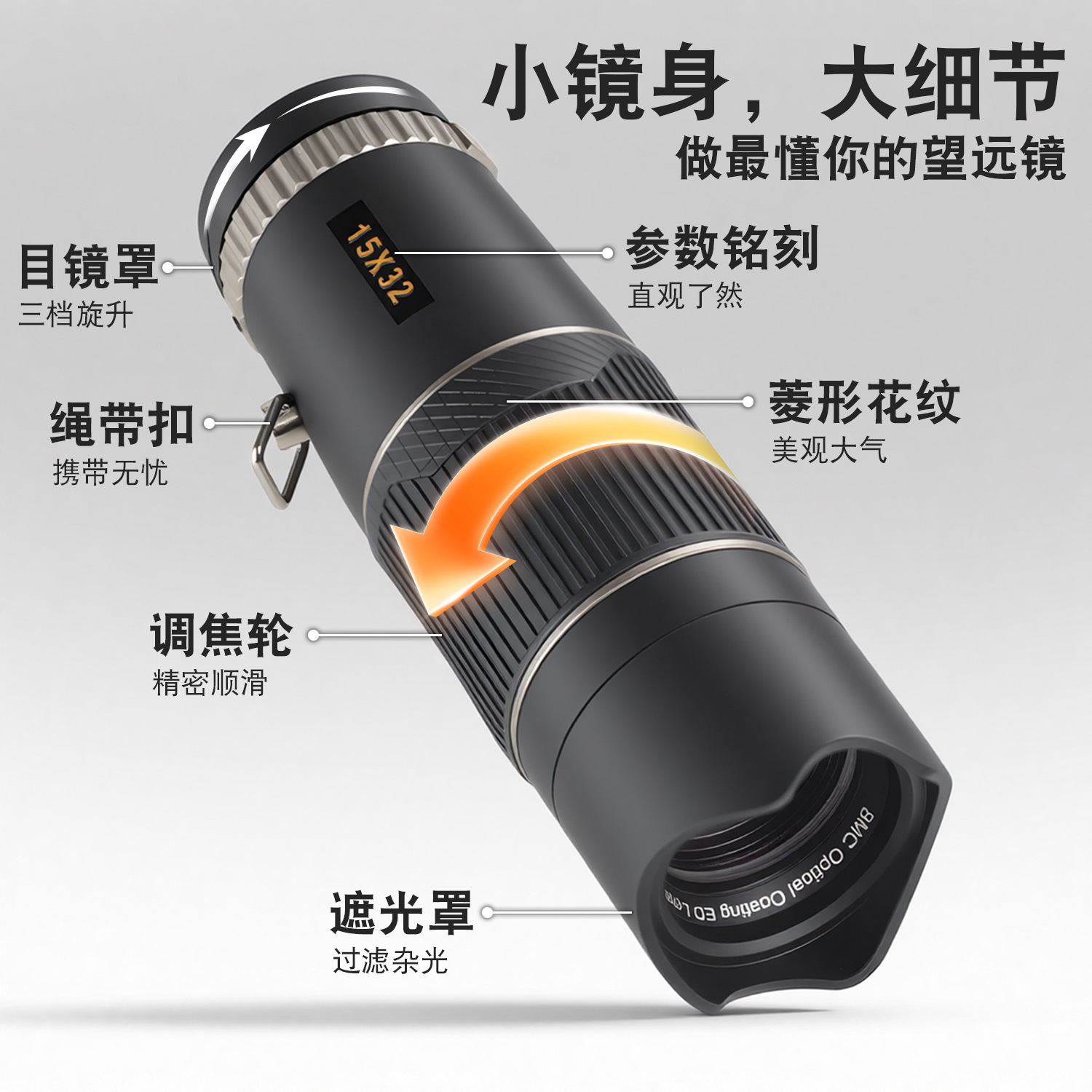 跨境批发单筒望远镜15X32高清高倍成人户外便携式新品手机望远镜