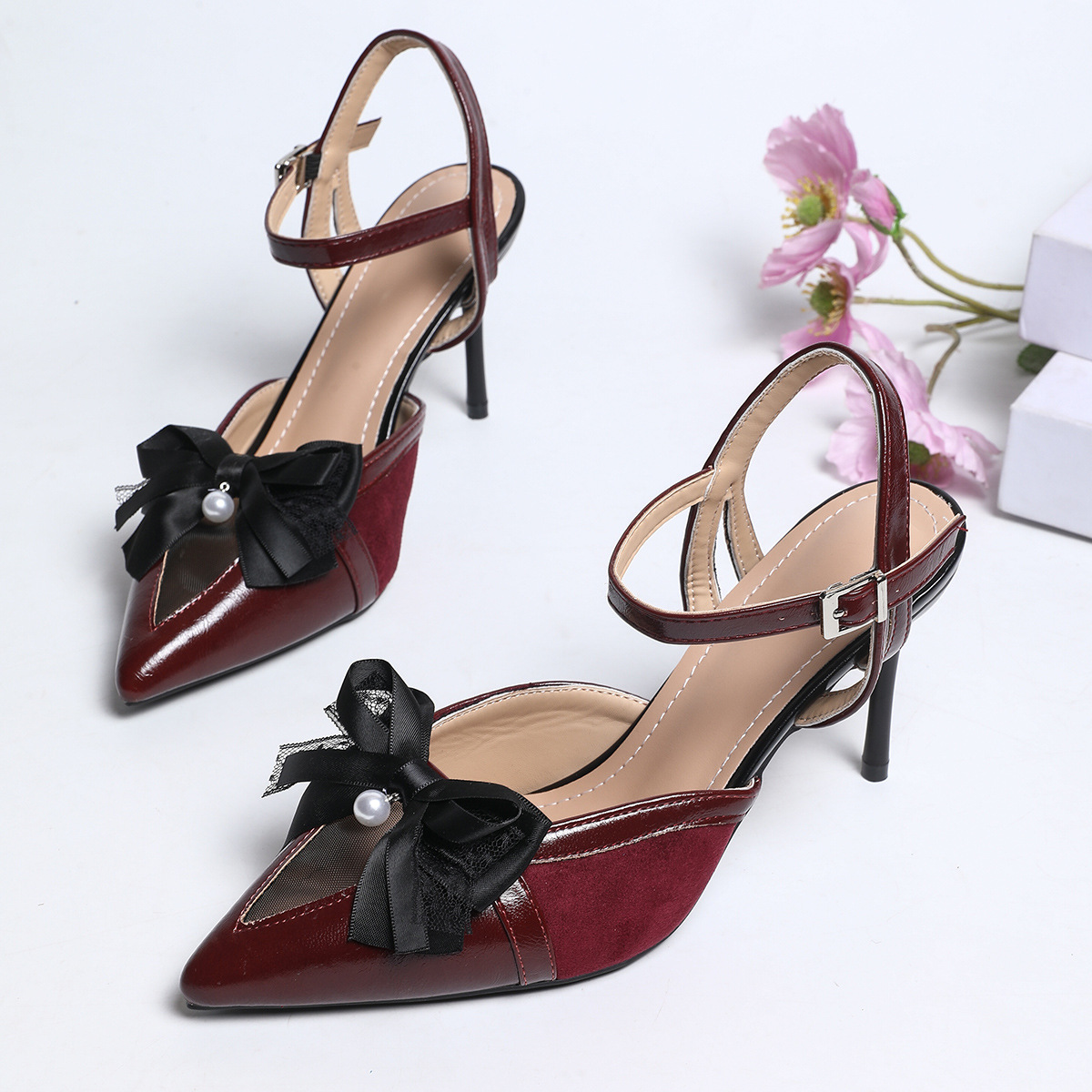 法式绸缎蝴蝶结新娘设计感小众主婚纱高跟婚鞋中空包头百搭凉鞋女