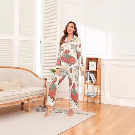 2026秋季休闲3d数码印花印花古巴领衬衫慵懒宽松设计感长裤套装