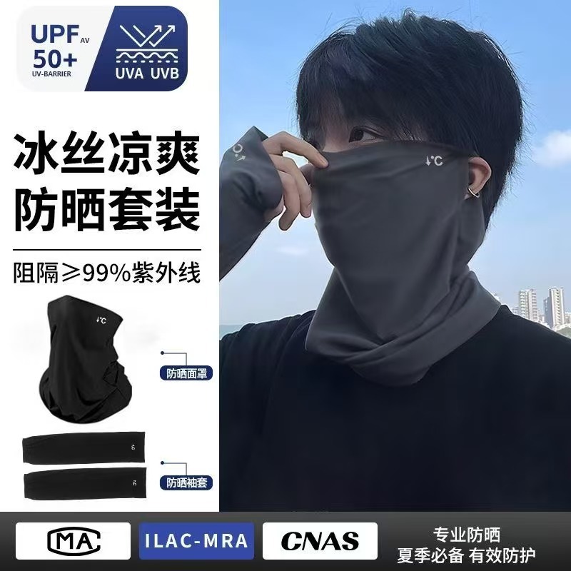 骑行遮脸护颈一体防紫外线面罩防晒男女同口罩户外透气冰丝三套装