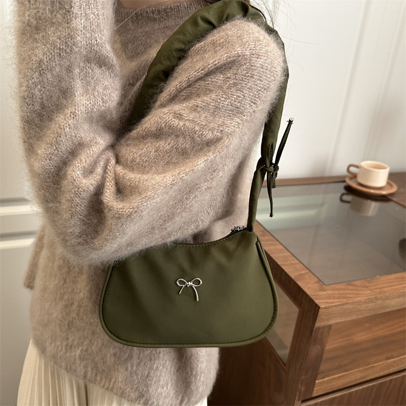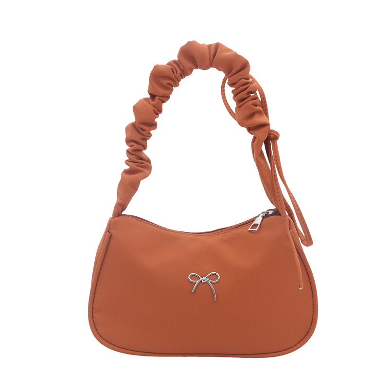 新款法式腋下包女小众洋气百搭单肩包时尚简约褶皱肩带新月包女