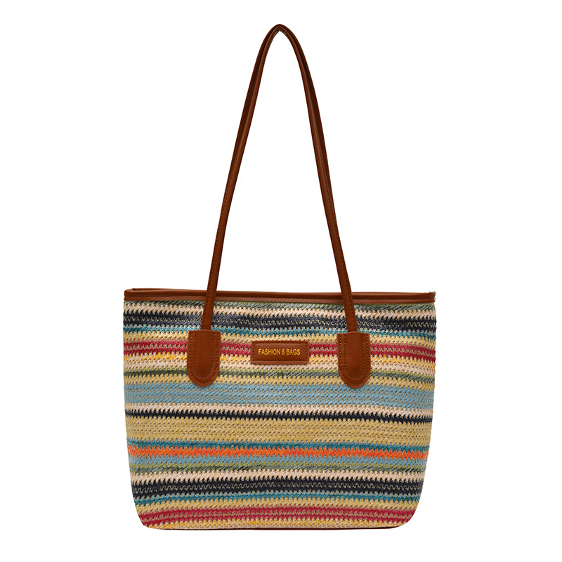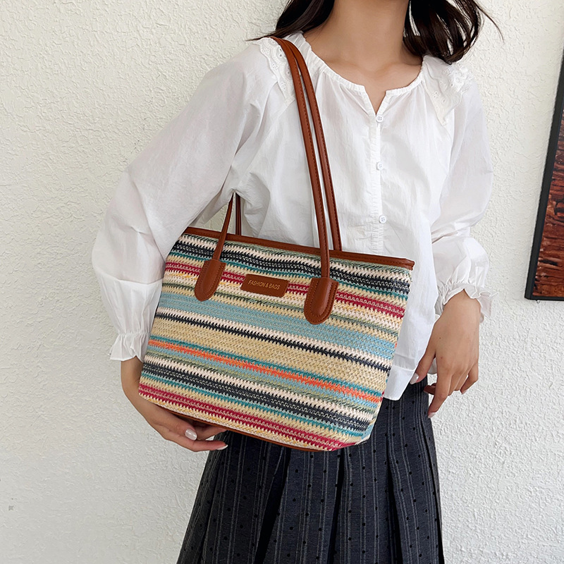 彩虹编织包包女2026新款时尚通勤包单肩腋下包大容量手提托特包