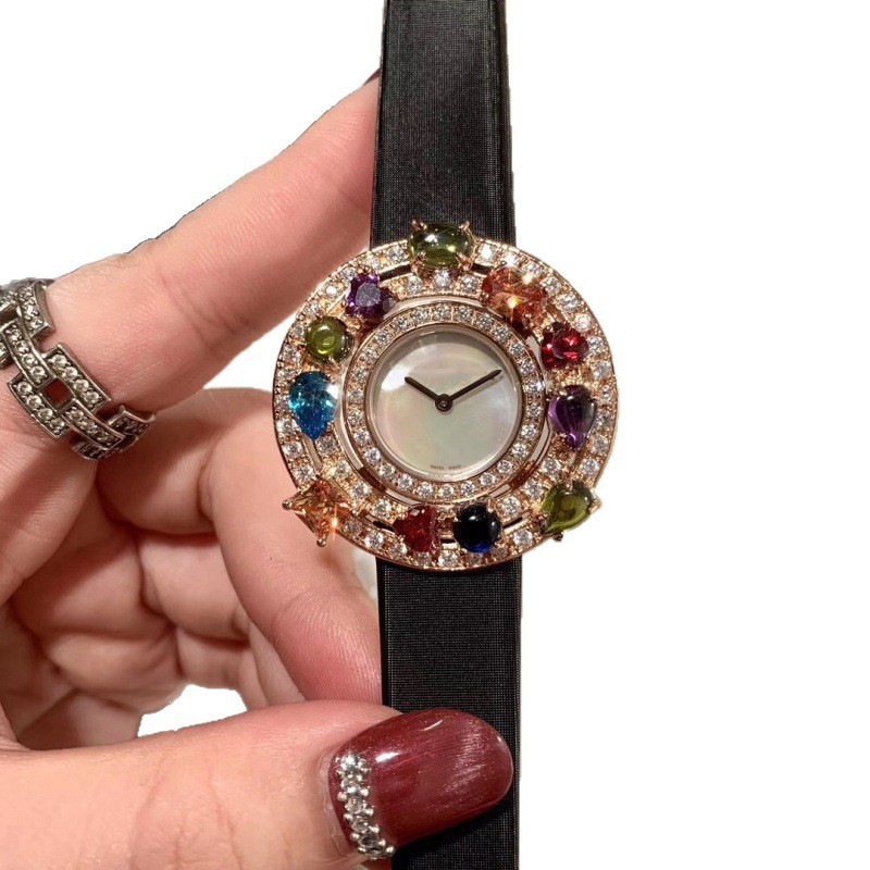 抖音爆款 珠宝系列彩钻手表 时尚个性女表石英表无痕代发爆款女表
