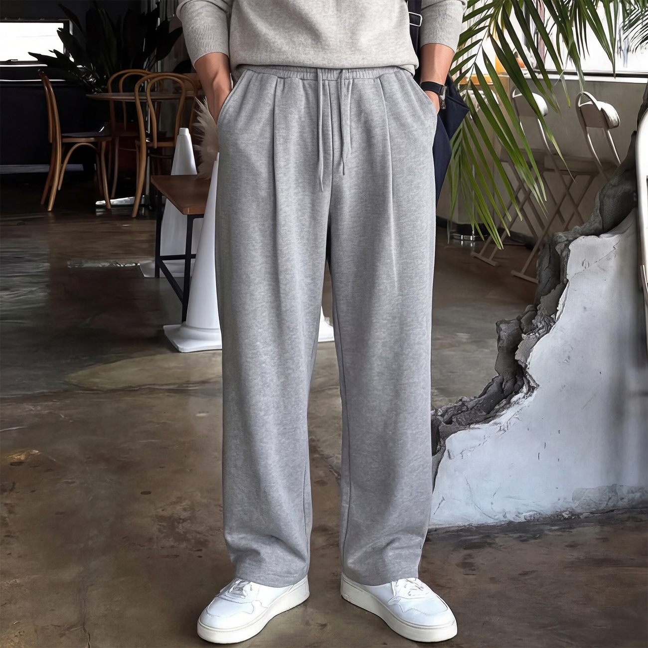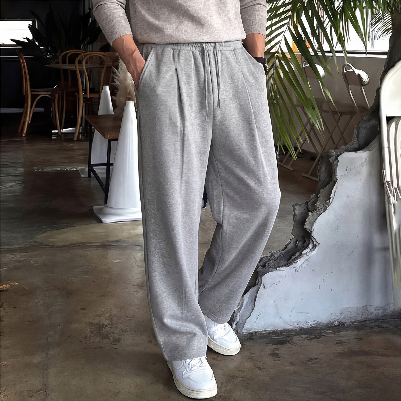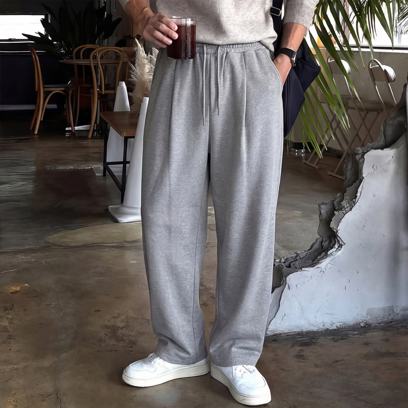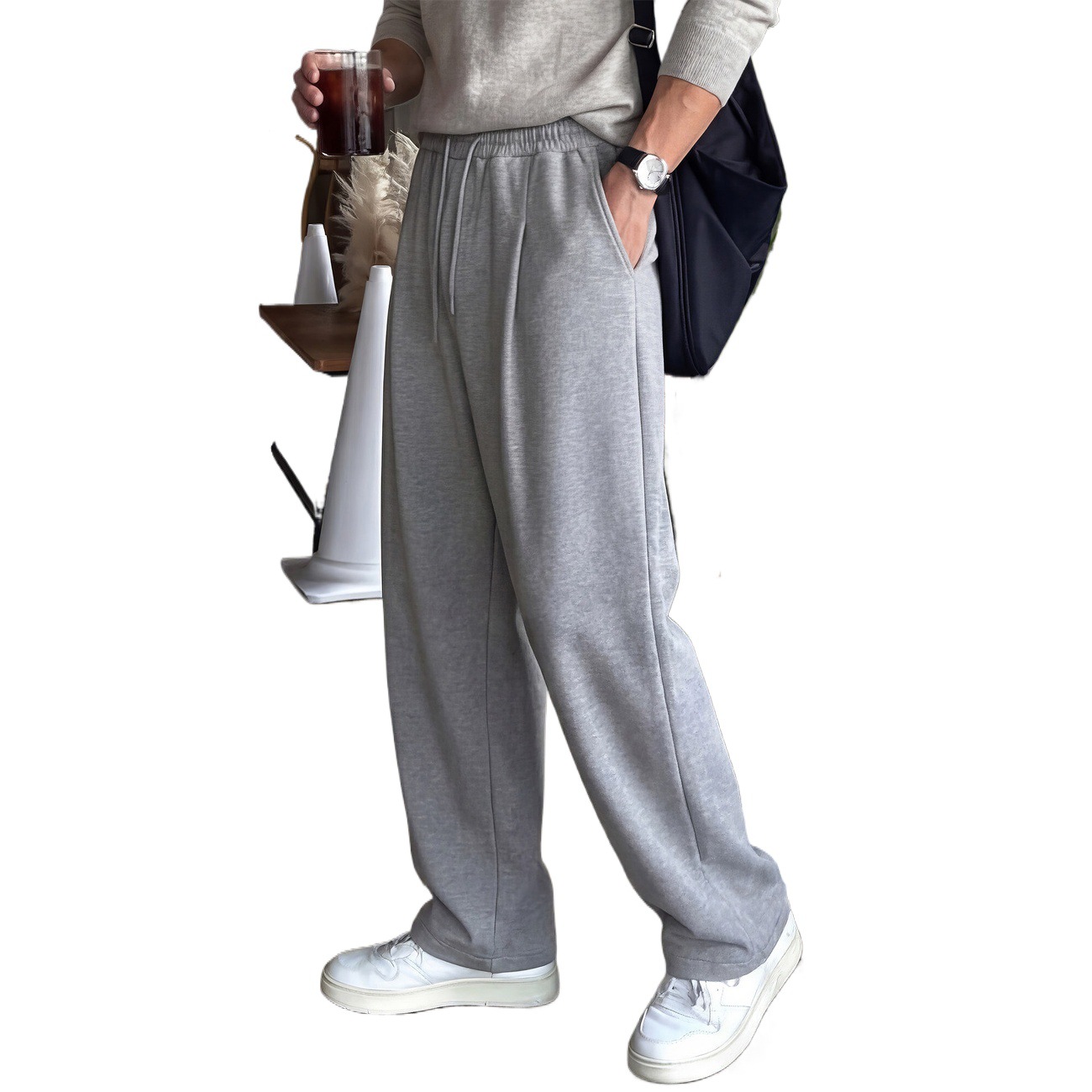 老钱风双褶皱休闲裤男2026春季新款宽松直筒垂坠感阔腿裤灰色长裤