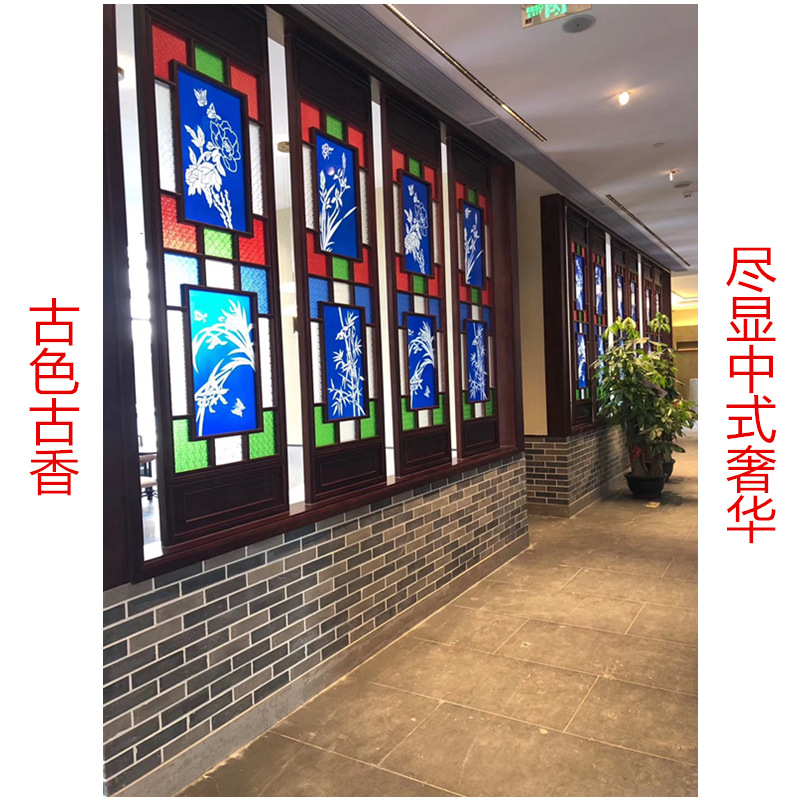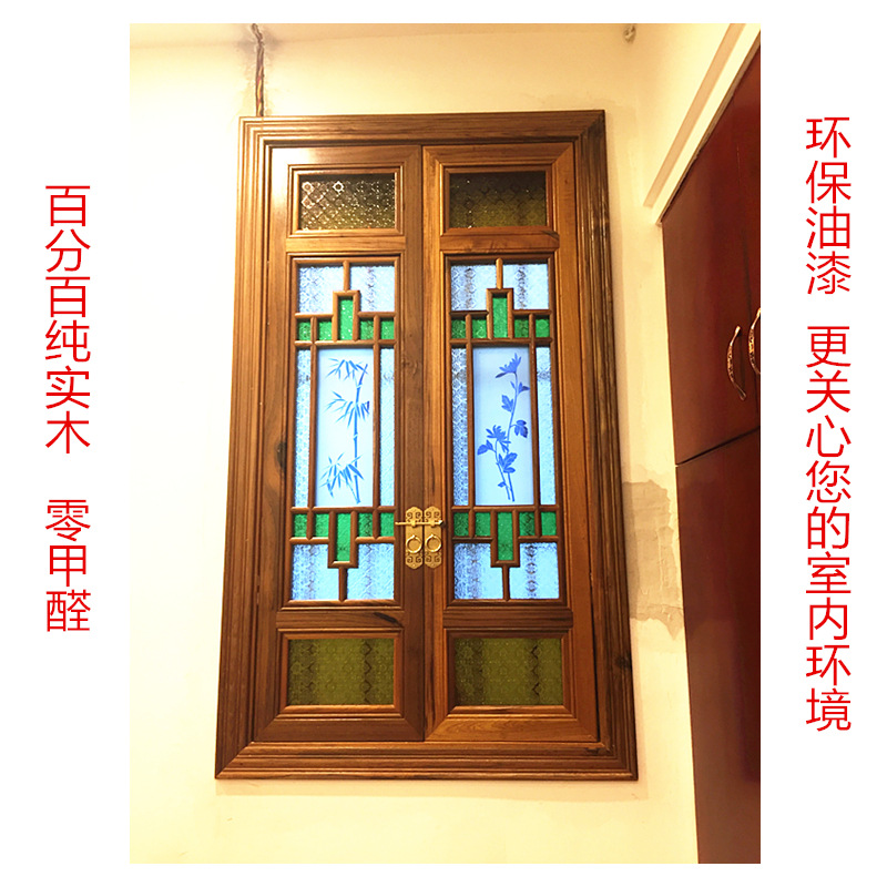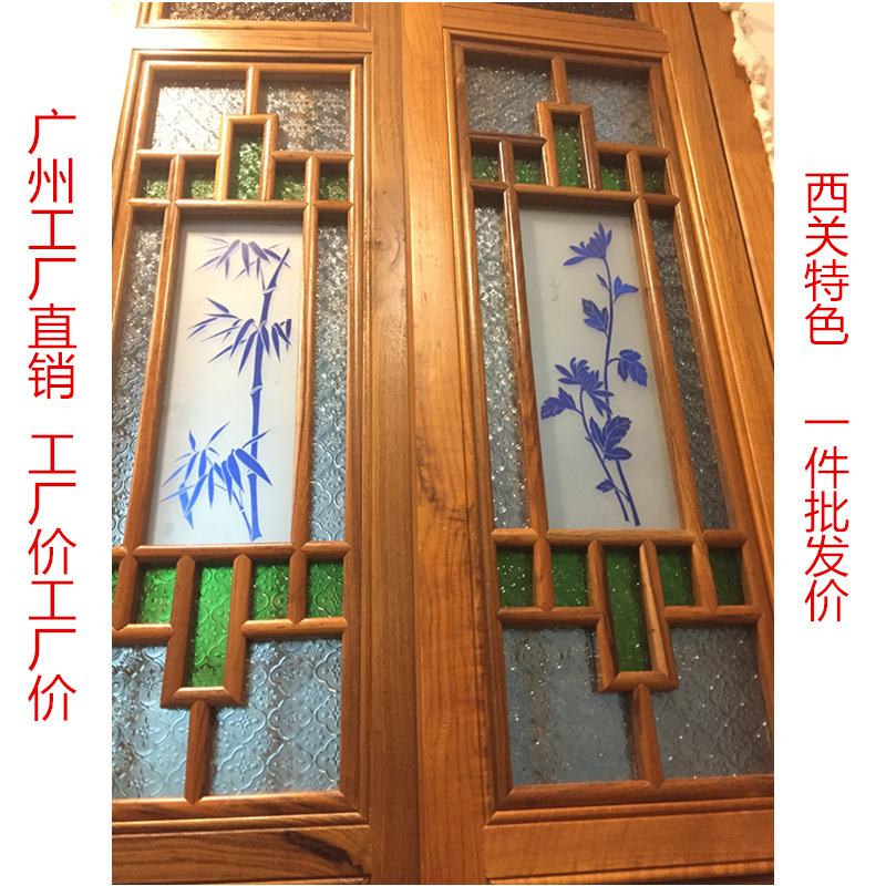 广州源头厂家直销中式实木琉璃玻璃满洲窗岭南花窗铝合金花格门窗