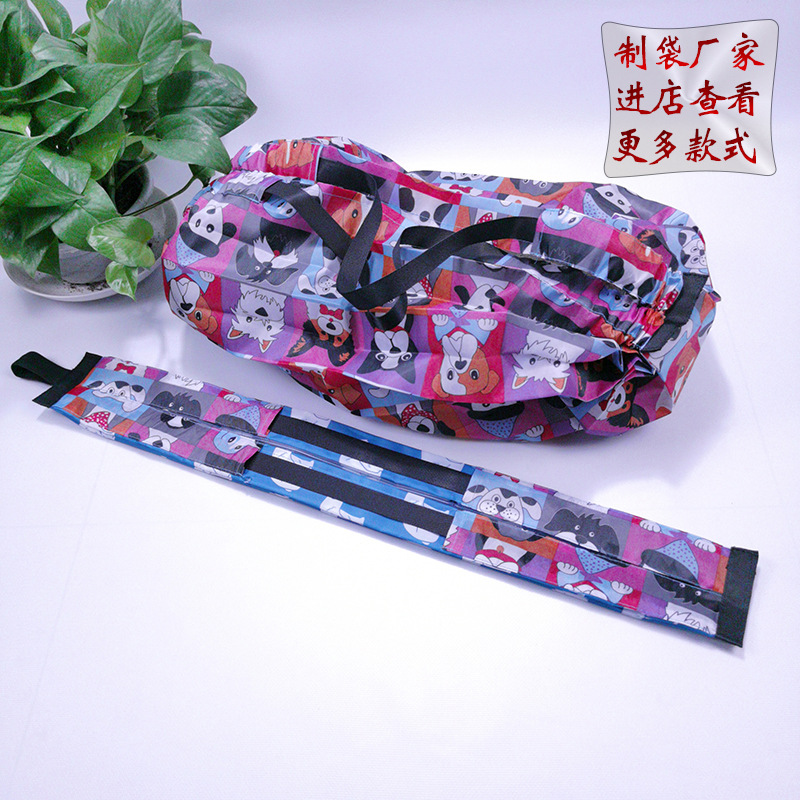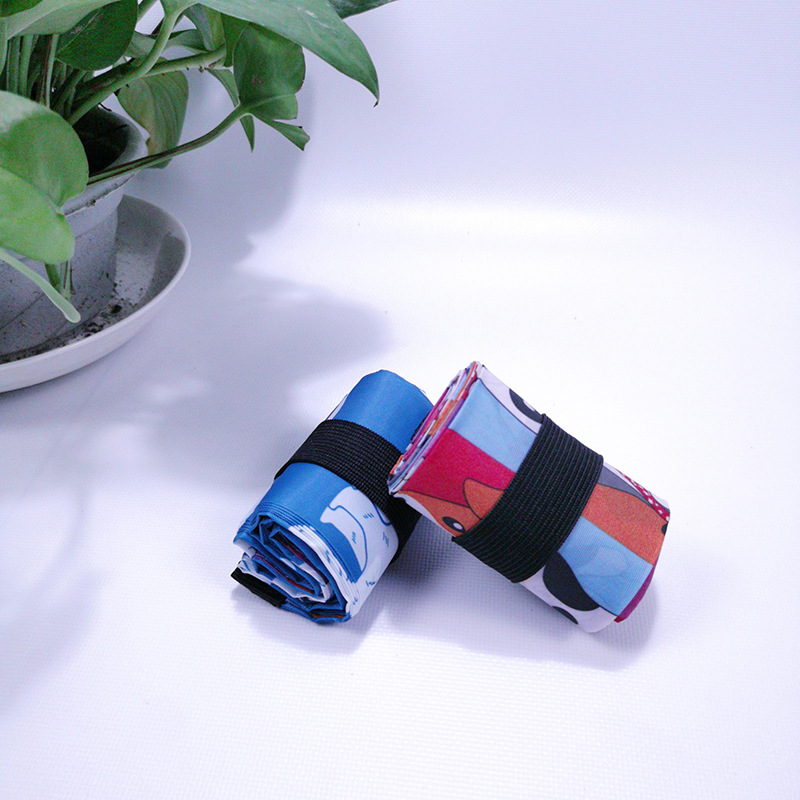 AOS新款花布手提购物袋涤纶松紧带收纳袋折叠袋广告袋可定制储物