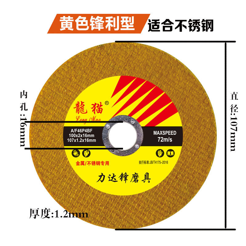 107×1.2×16mm不锈钢切片100型角磨机金属切割砂轮片手磨机