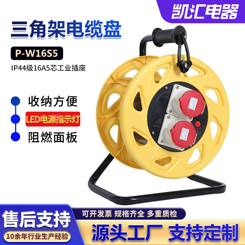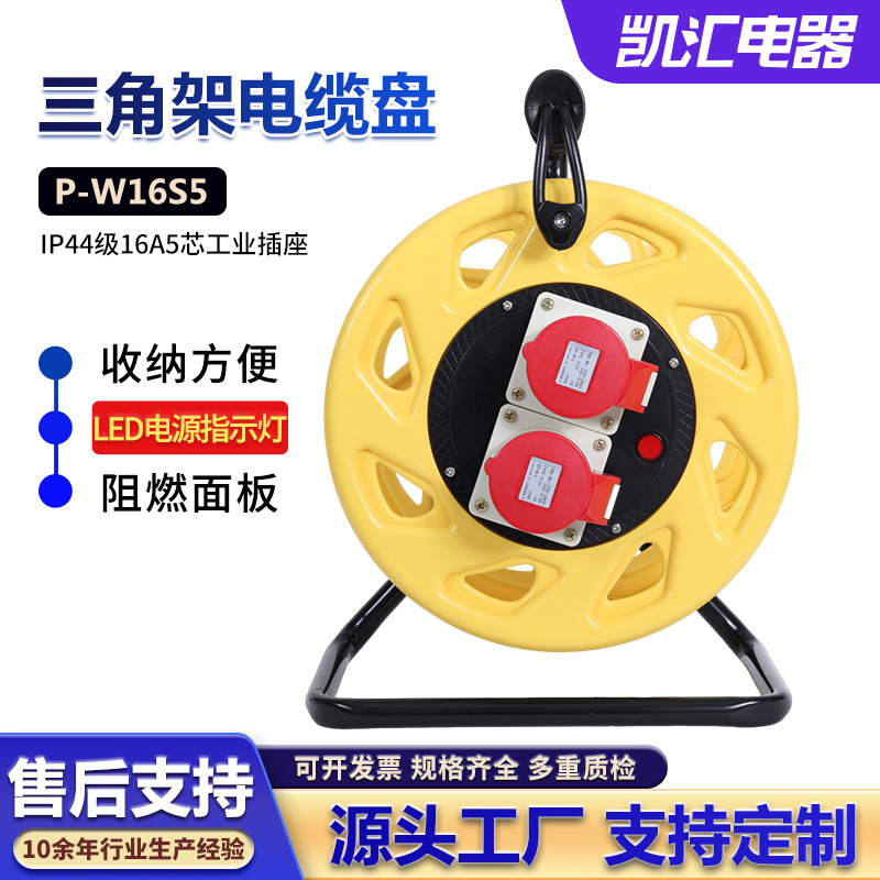 三角架电缆盘带工业插座IP44级-16A5芯(P-W16S5)工业电缆盘