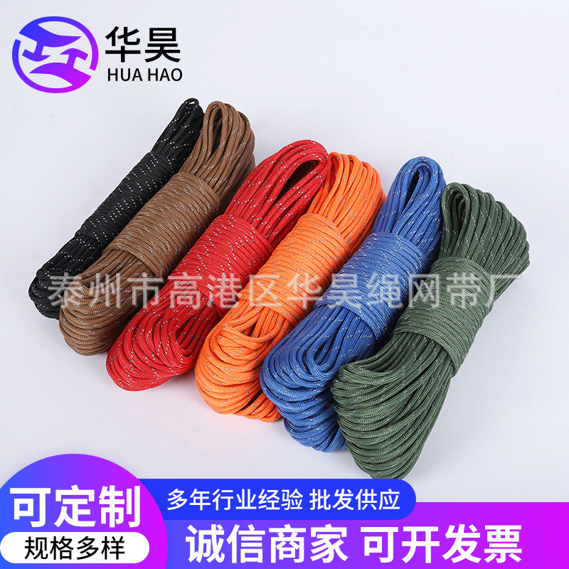 厂家供应高亮反光伞绳应急救援逃生绳反光地钉绳户外帐篷绳