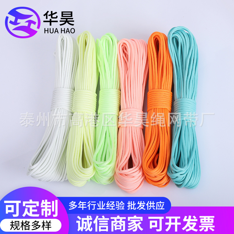 夜光九芯自吸光发光伞绳野营户外捆绑绳供应多色发光荧光涤纶绳