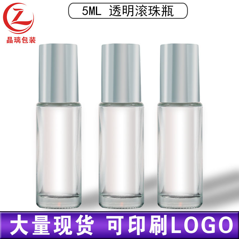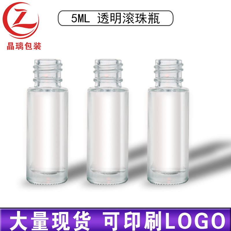 晶璃玻璃化妆品加白盖直圆玻璃瓶5ml滚珠瓶精油分装走珠小样精华