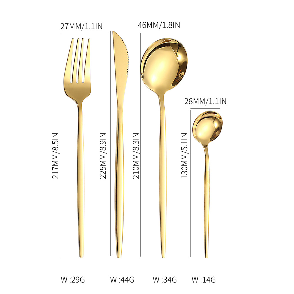 | 抛光工艺 | 布轮光(镜面抛光) | 套装清单 | 餐刀/餐叉/餐勺/茶勺 |