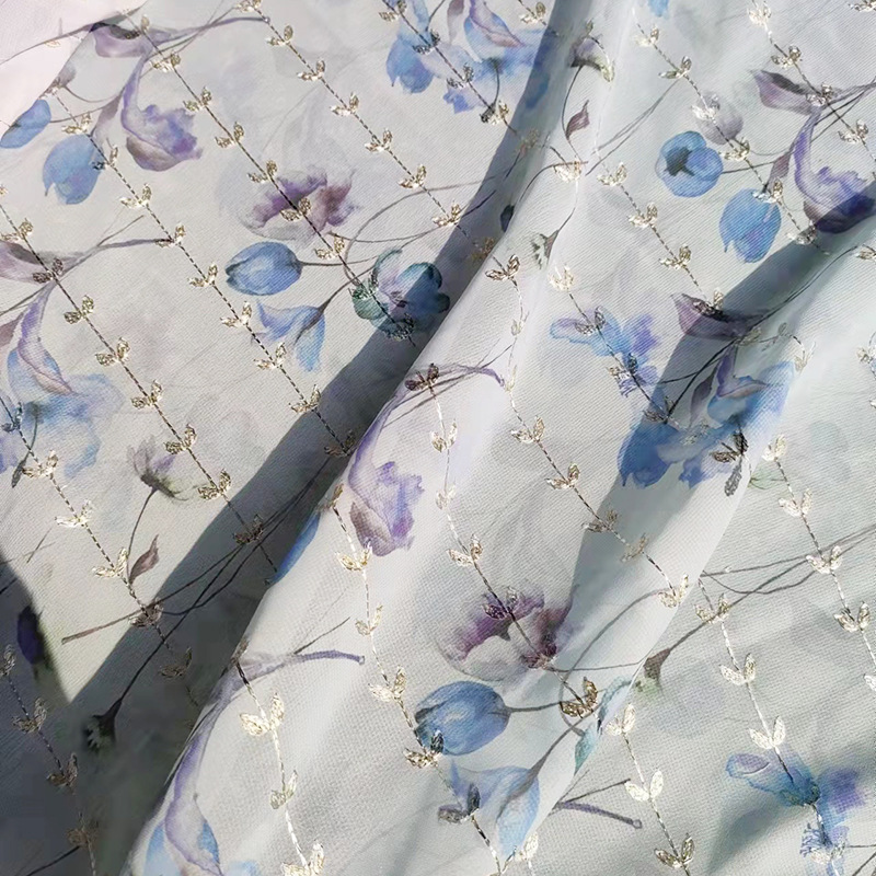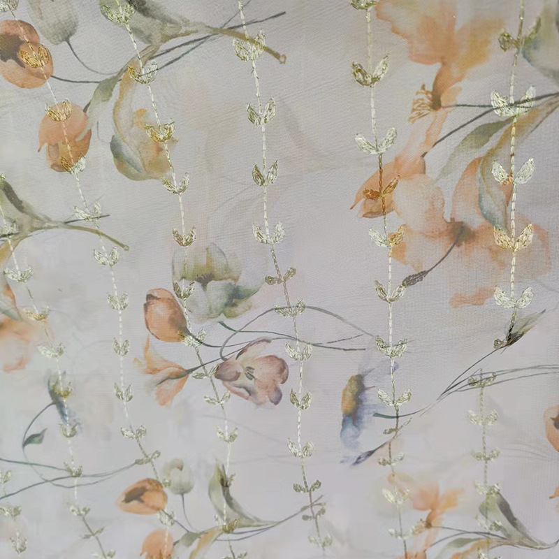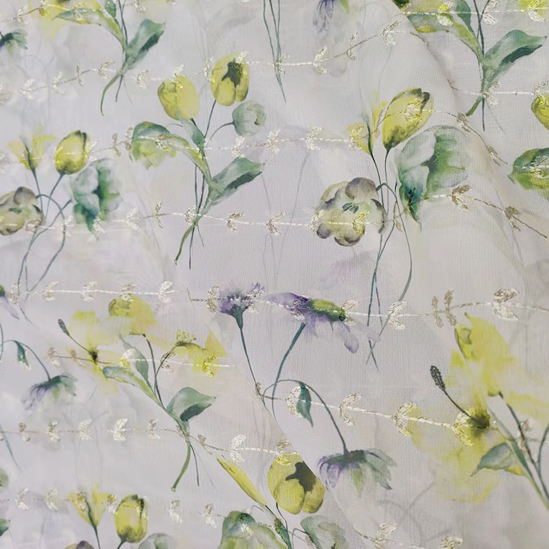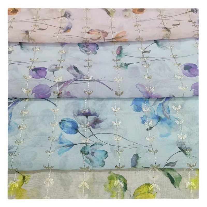 2025新款麦穗绣花雪纺底布舒适童装面料时尚涤纶人造丝上衣面料