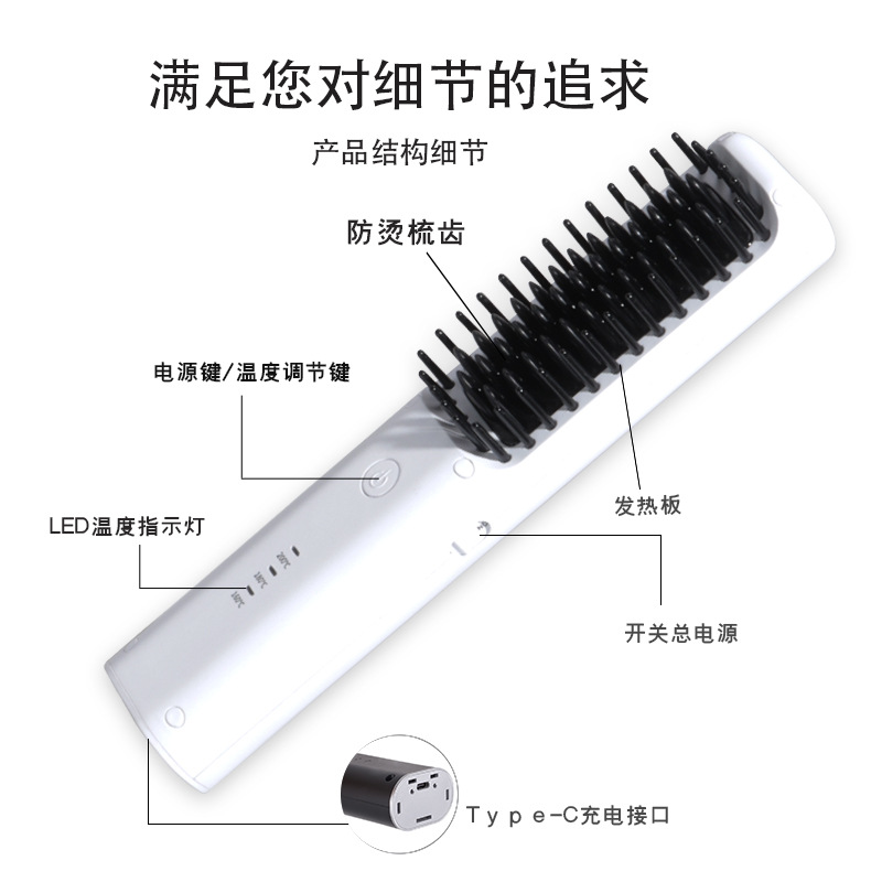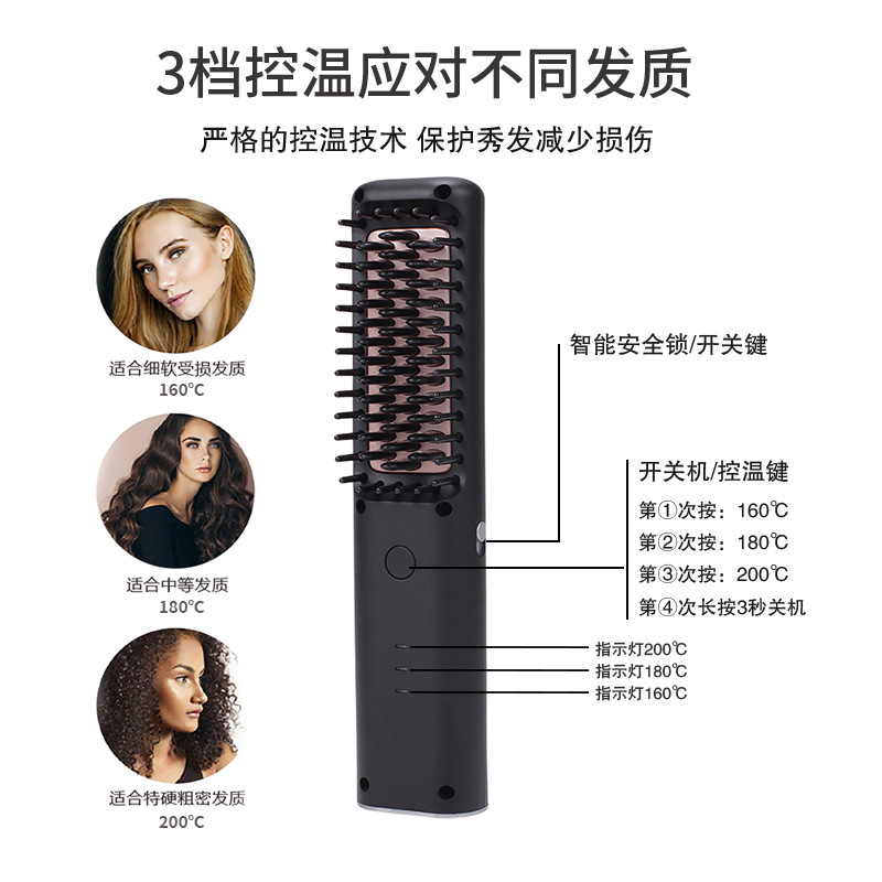 新款跨境干湿直卷两用迷你便携无线大容量USB充电误触开关直发梳