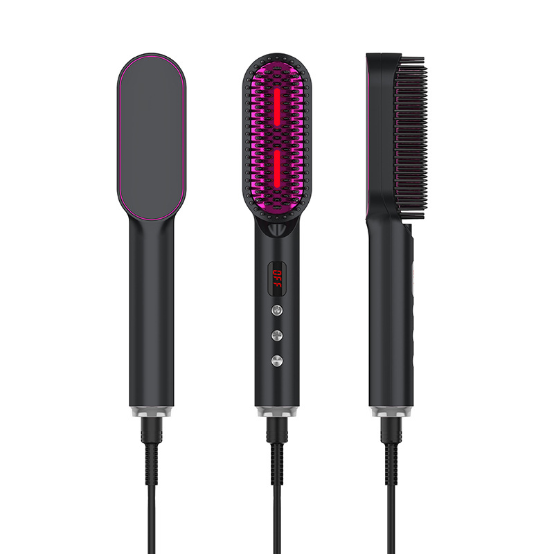 新款跨境干湿卷直两用红外线负离子多功能大型电动造型懒人直发梳