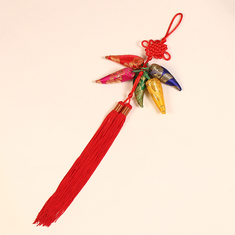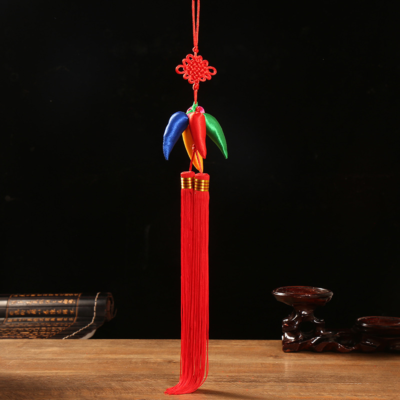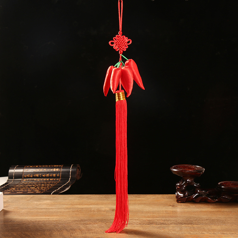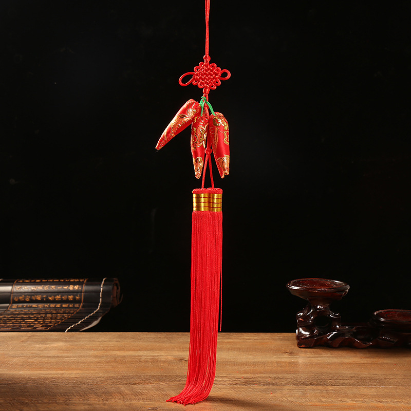 春节彩色烫金辣椒流苏挂件十字中国结喜庆饰品客厅车载装饰品现货