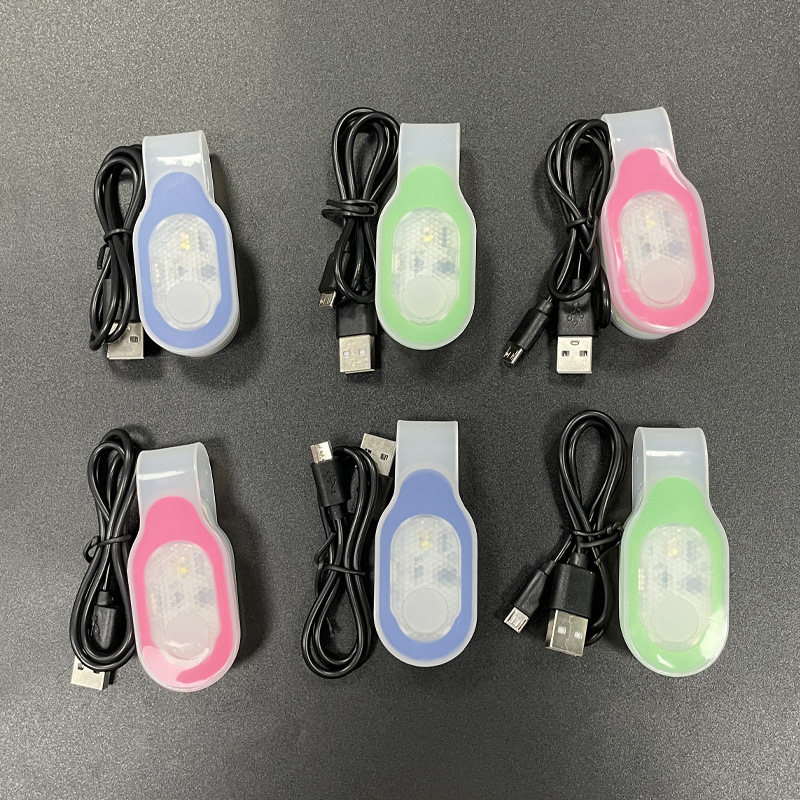USB充电款随身led发光硅胶磁吸领夹灯夜跑儿童防丢骑行警示信号灯