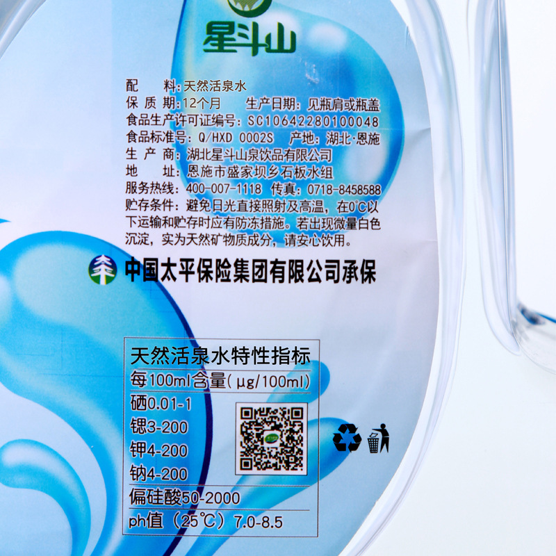 星斗山泉桶装水恩施硒锶活泉水 弱碱山泉水4.5Lx4大瓶箱装湖北