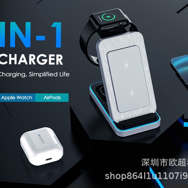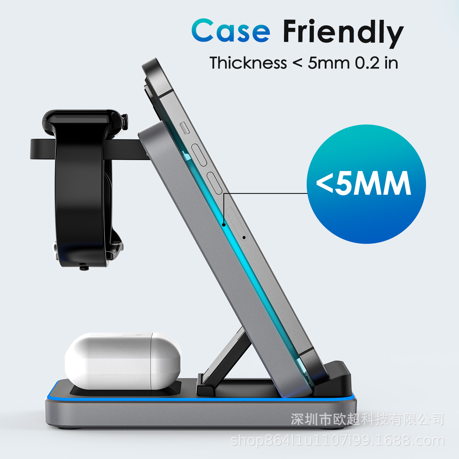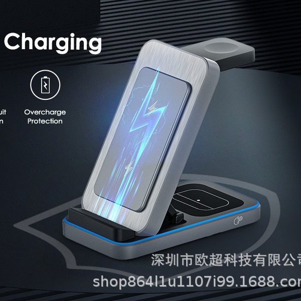 15w可折叠三合一无线充电器支架适用于苹果手机手表耳机无线支架