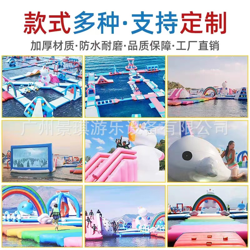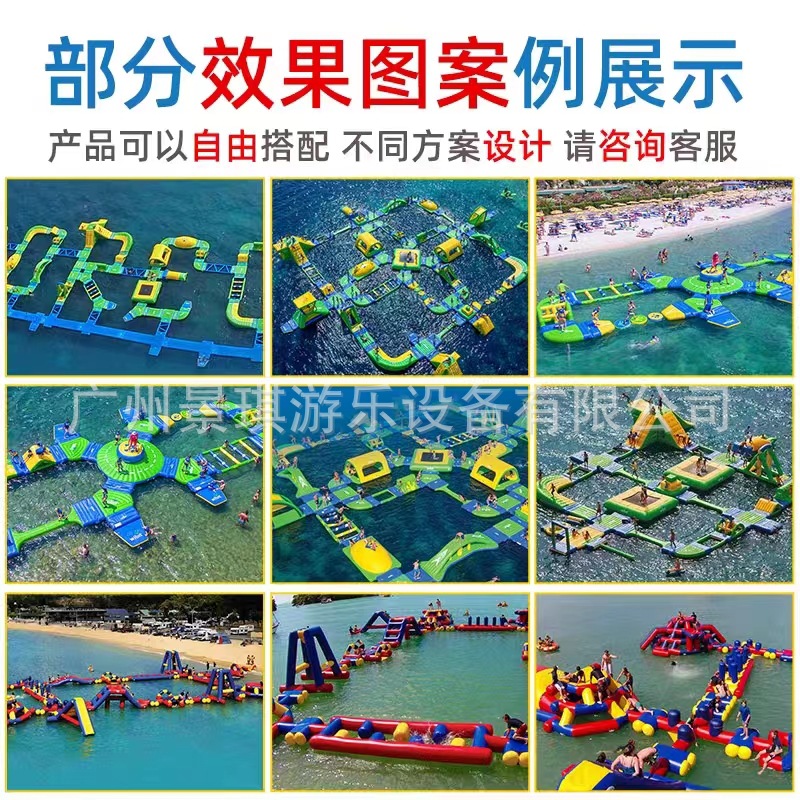 户外大型充气水上闯关设备移动水上乐园大滑梯湖面水上冲关厂家