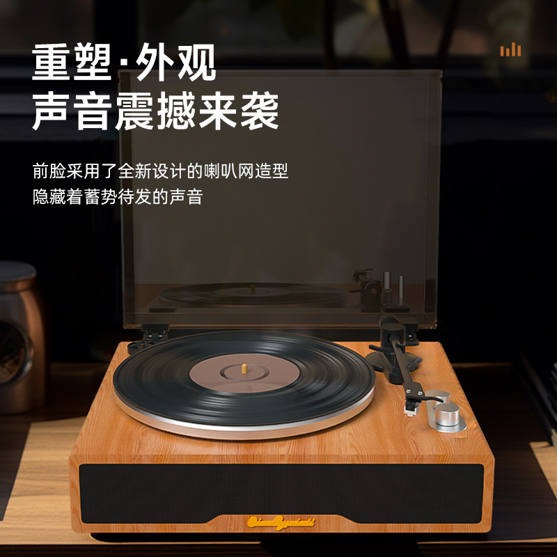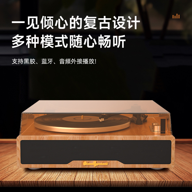 跨境现货黑胶唱片机留声机蓝牙音响木质播放机摆件复古唱机礼物LP
