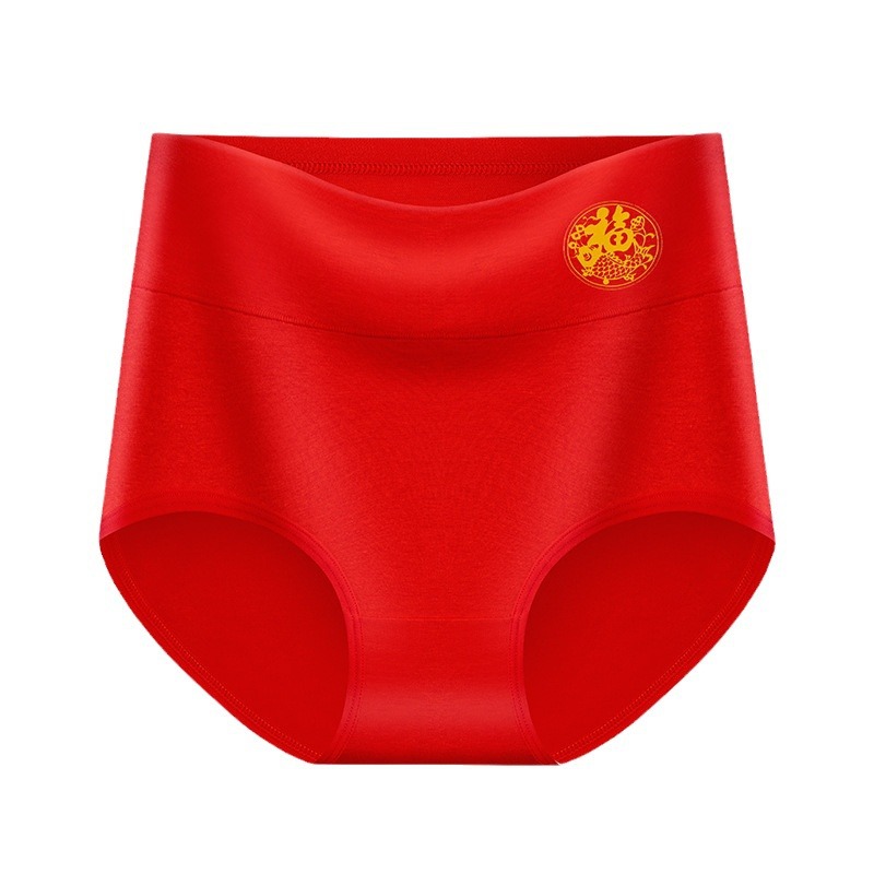 厂家直销本命年红中高腰女士内裤少女简约舒适透气棉质女生三角裤
