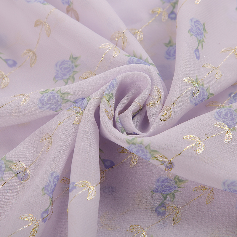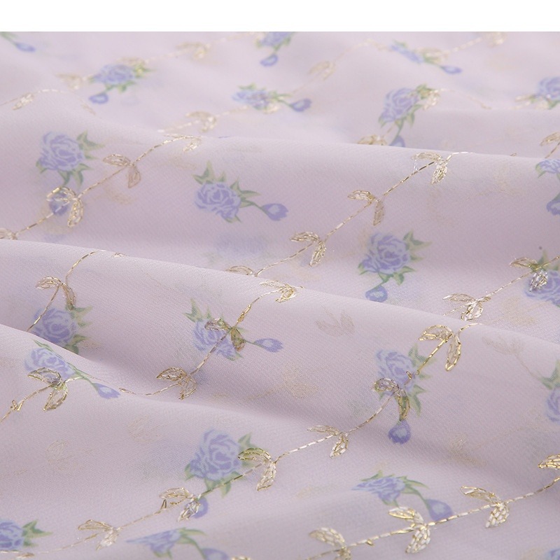绍兴厂家供应雪纺剪花布面料秋冬款裙子汉服印花面料连衣裙布料