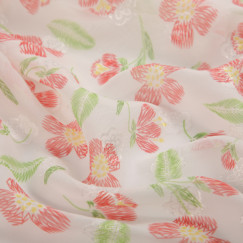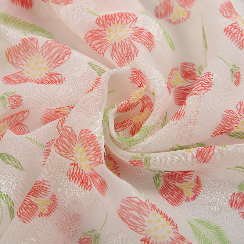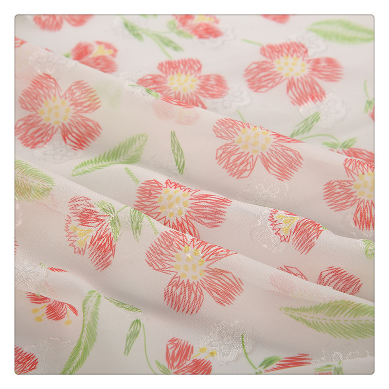 厂家批发雪纺剪花布面料秋冬款裙子汉服雪纺时装印花面料服装布料