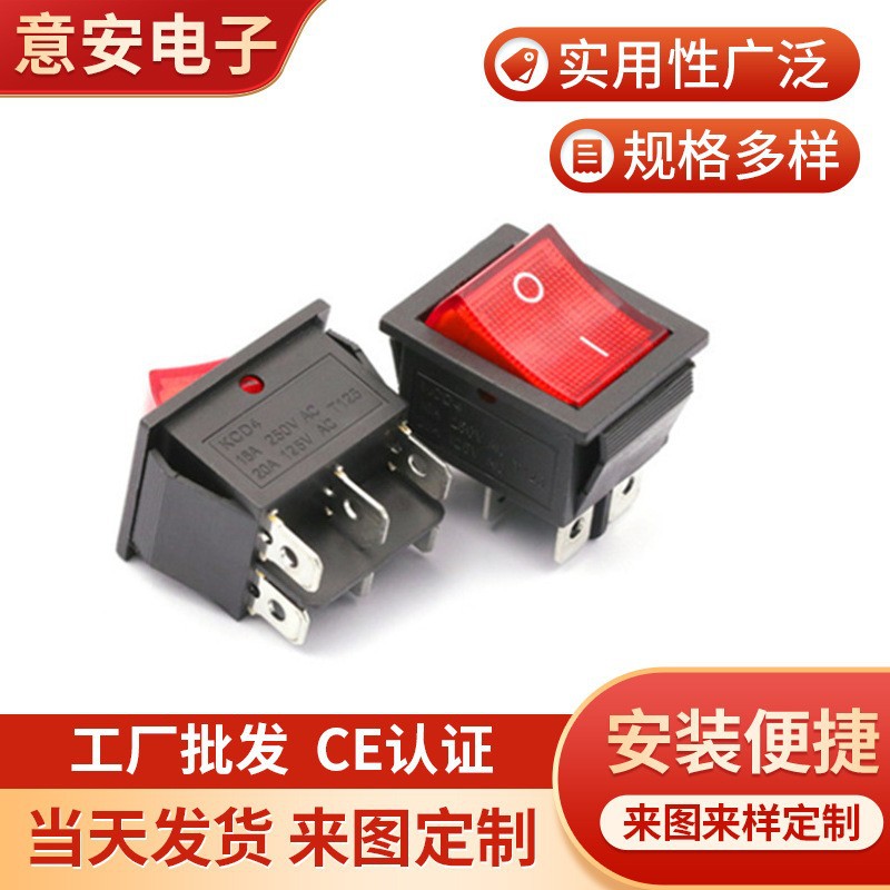 翘板开关KCD4六脚两脚船型开关电源插座开关带灯三脚两档开关KCD1