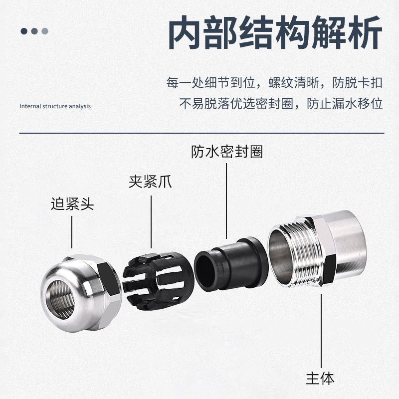 G1/2金属电缆格兰头 不锈钢内螺纹防爆接头定制 密封内螺纹填料函