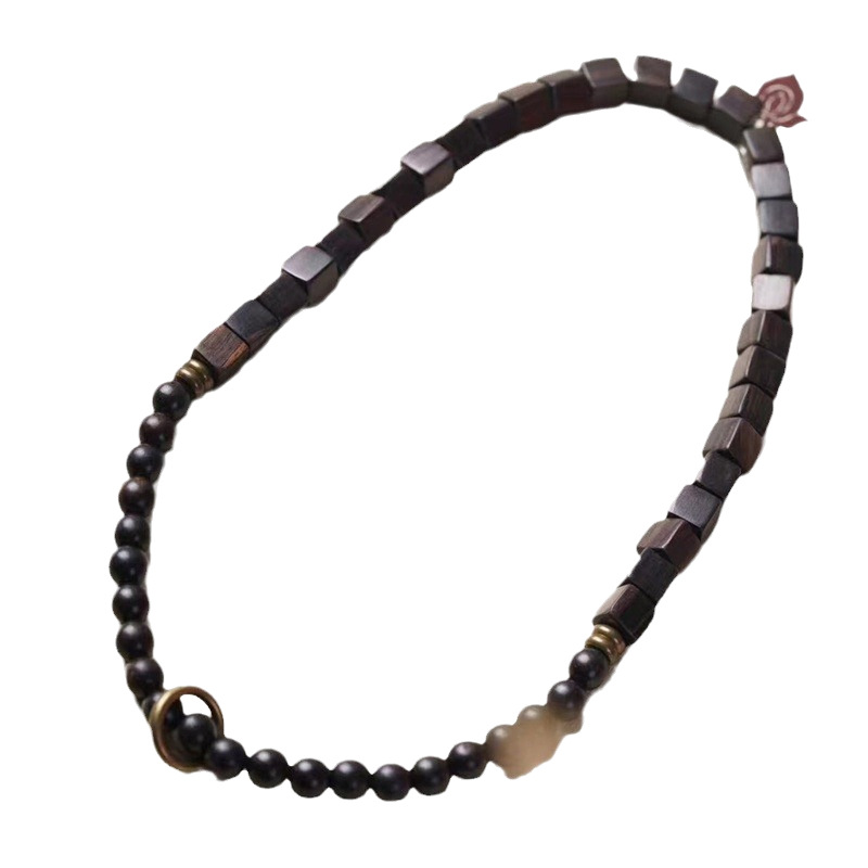 原创设计黑檀木方块珠搭配圆珠跑环手链手持文玩木质双圈情侣手串