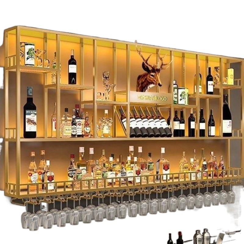 ir酒吧吧台酒柜靠墙壁挂式置物架工业风铁艺展示架创意壁挂红酒架