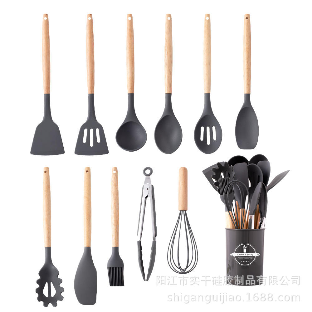 创意硅胶厨具12件套装硅胶锅铲勺汤勺不粘锅烹饪铲勺套装厨房用品