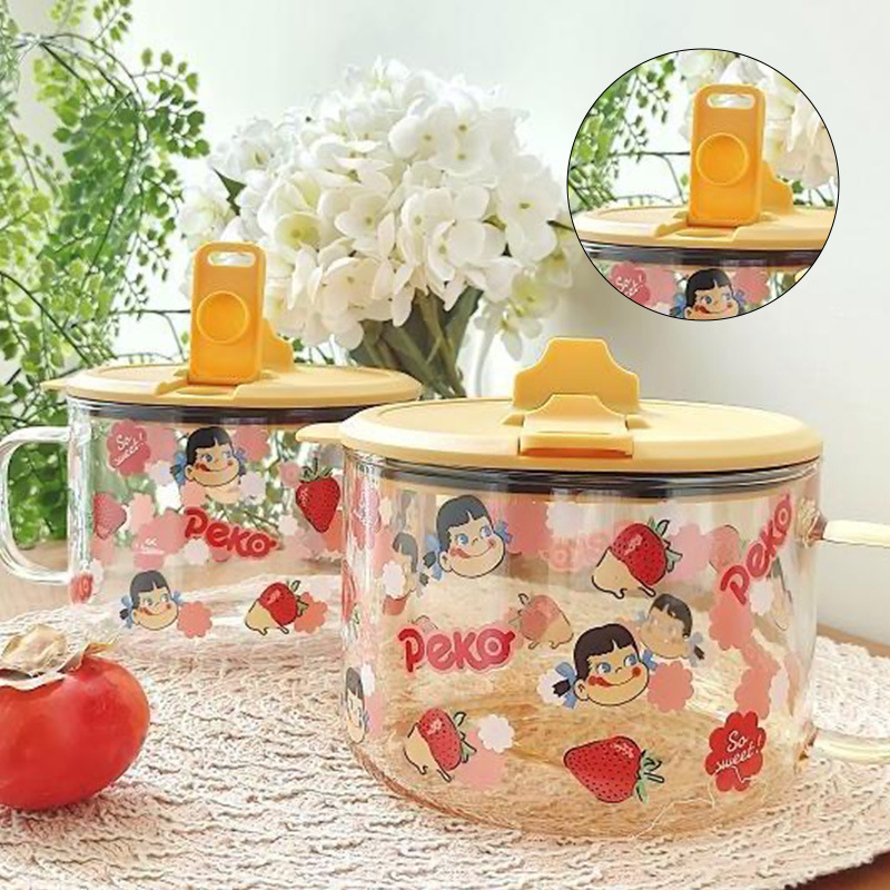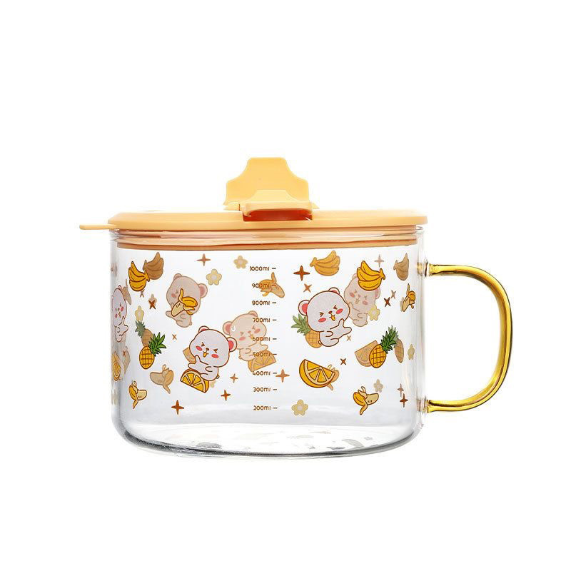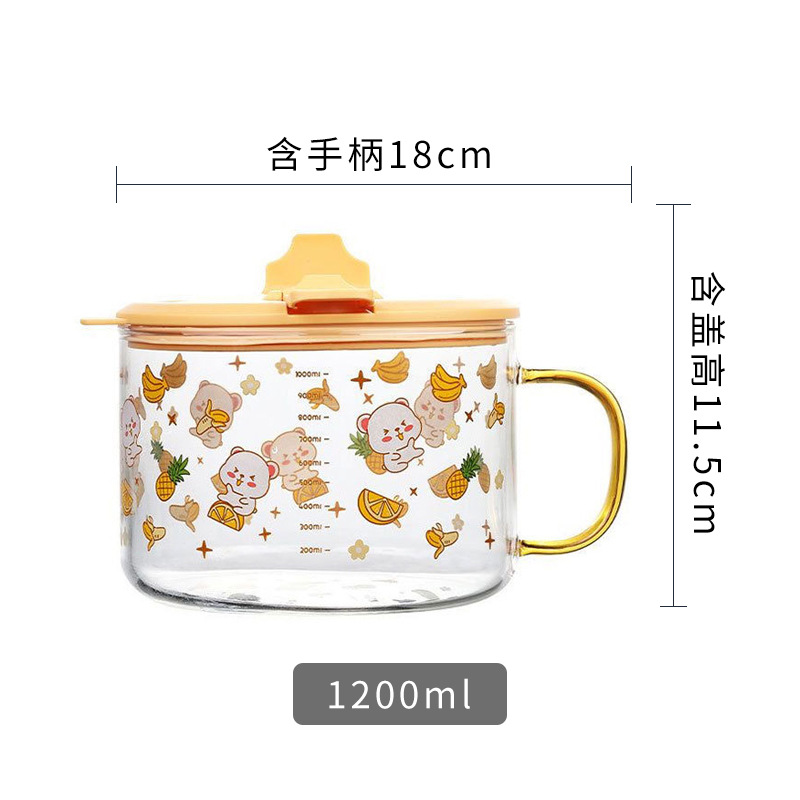大容量玻璃泡面碗pe盖子手柄圆形耐热玻璃上班族宿舍方便面碗汤碗