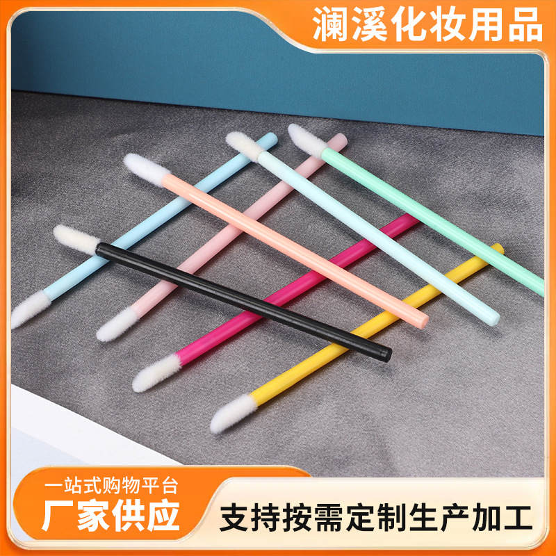 .一次性彩色实心唇刷便携式迷你唇刷棒植绒口红勾勒化妆师唇膏刷