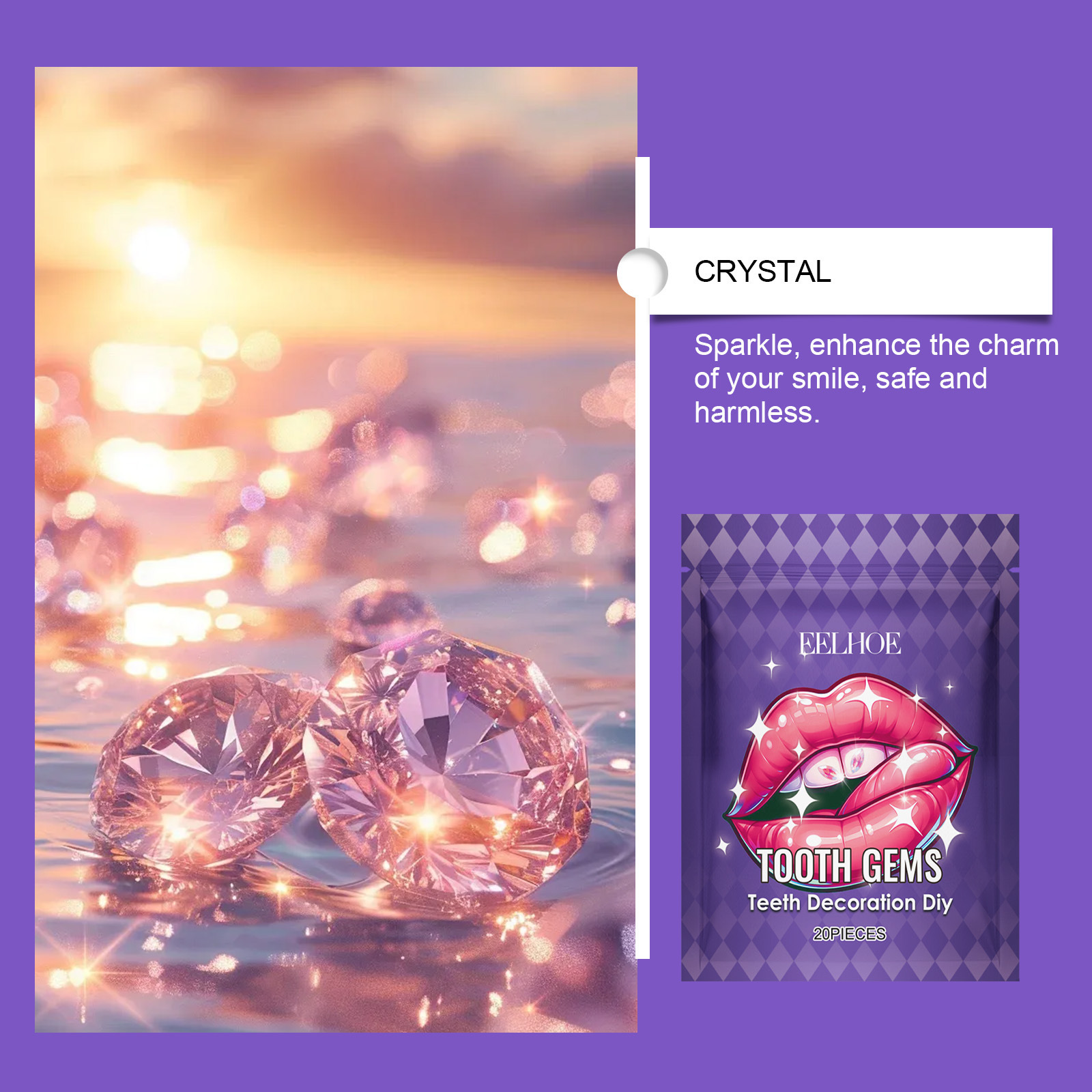 EELHOE牙钻装饰闪耀美牙贴提升笑容亮度持久轻松适合各种牙齿类型