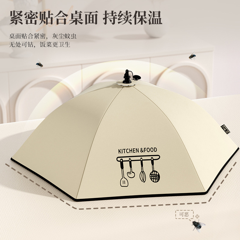 | 是否有专利 | 无 | 尺寸 | 餐桌罩吸盘式70cm圆形 奶油色+黑色 |