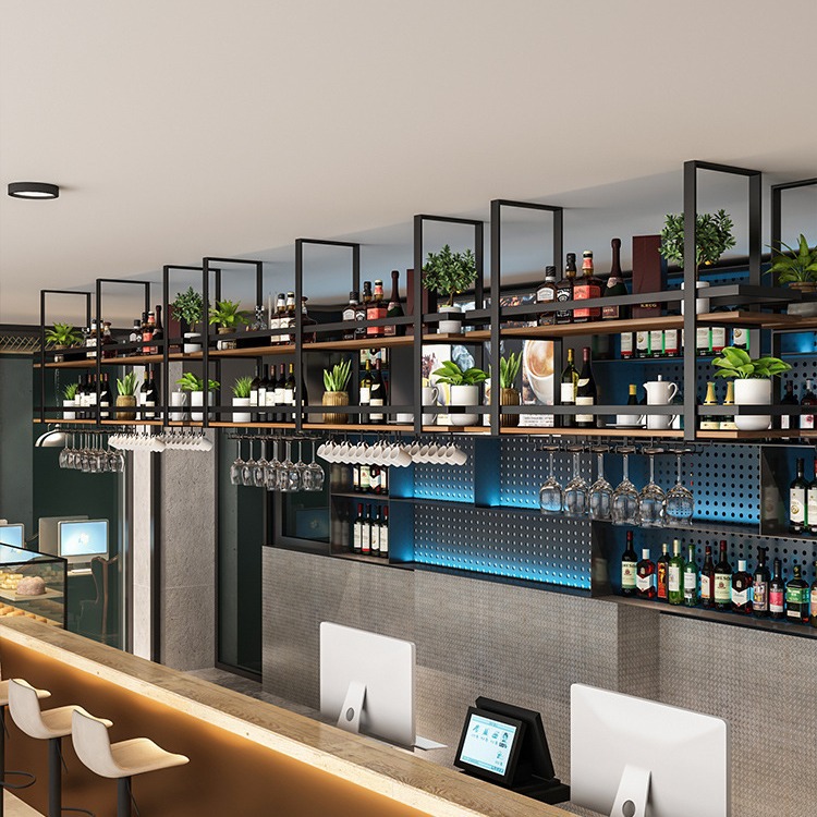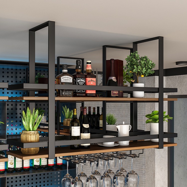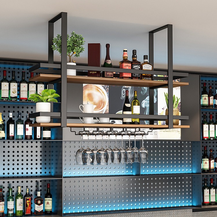 吧台吊架酒架酒柜吊柜置物架悬挂式酒吧餐厅吊挂工业风铁艺吊杯架