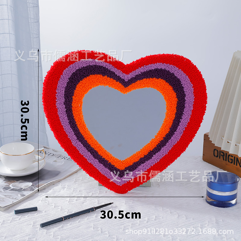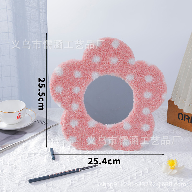 戳戳绣镜子包绒布化妆镜可爱创意摆件装饰相框镜子毛绒绒家居摆件