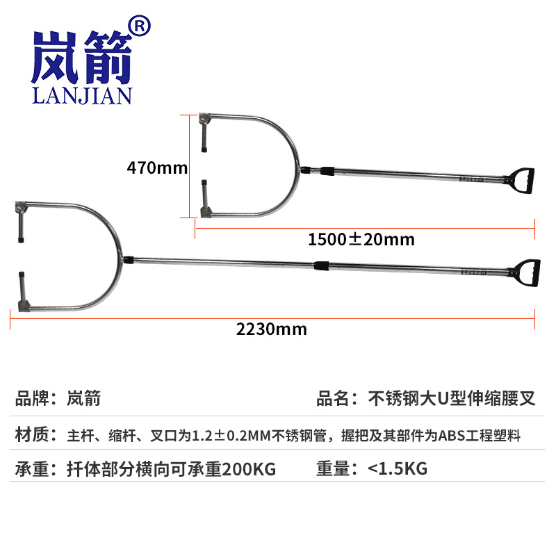 厂家供应不锈钢大U型伸缩腰叉自动回弹型脚叉 U型不锈钢腰叉