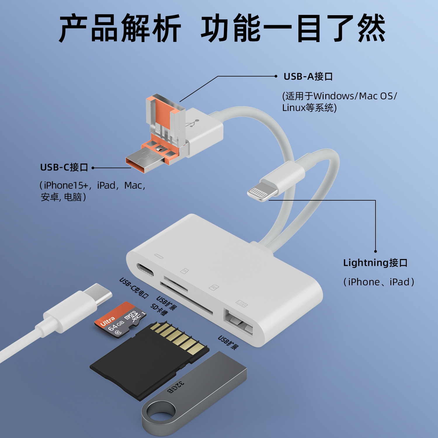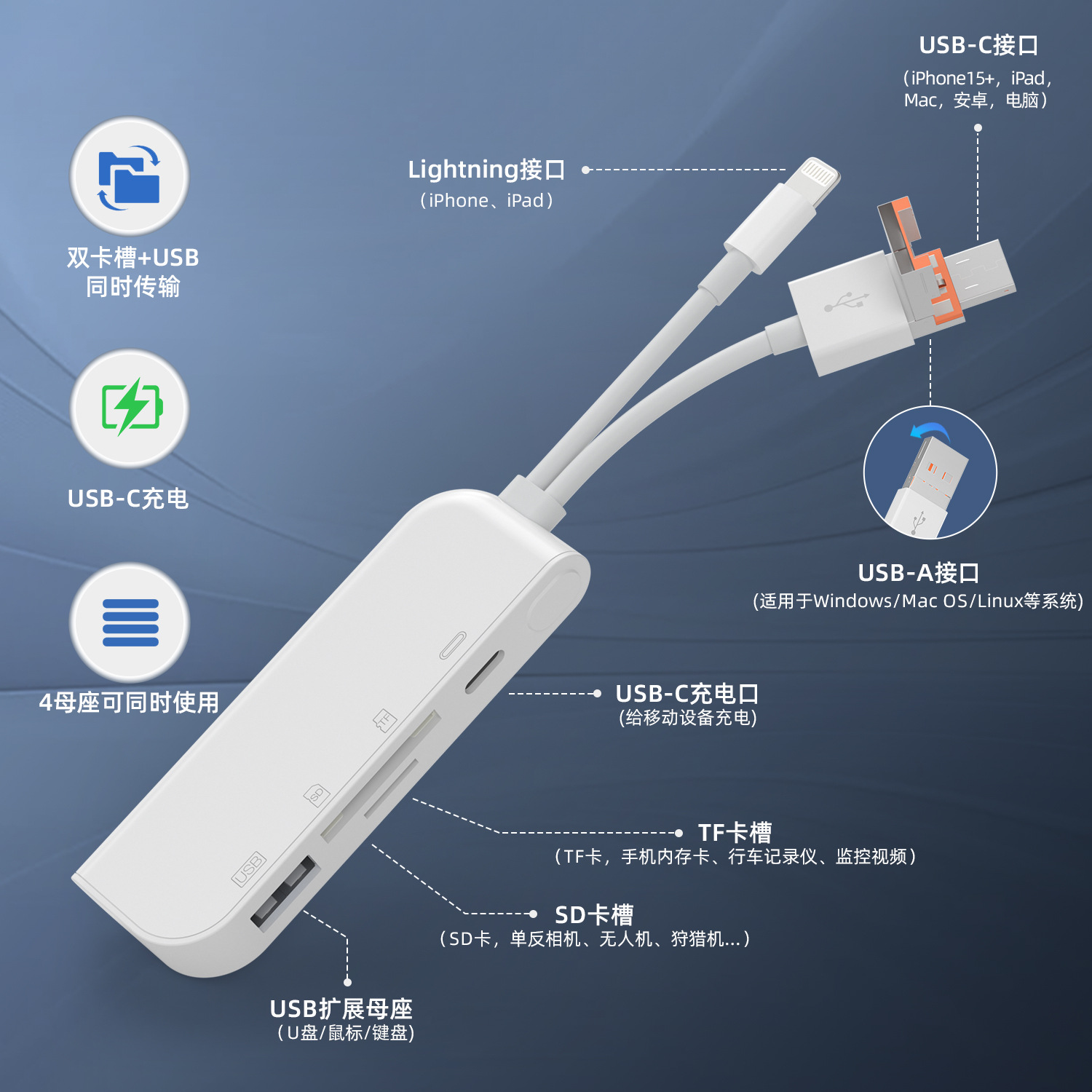 适用苹果安卓华为读卡器SD卡手机OTG多合一TYPE-C读 卡器USB十合