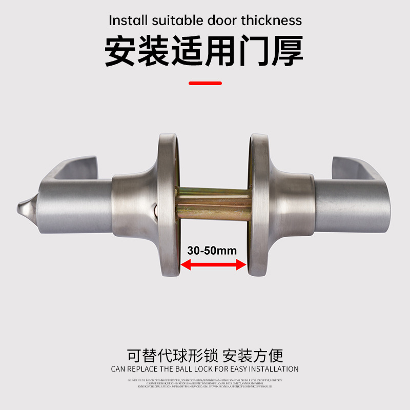 三杆式球型执手锁铝合木门锁三柱式塑钢门锁彩钢门锁卫生间门锁