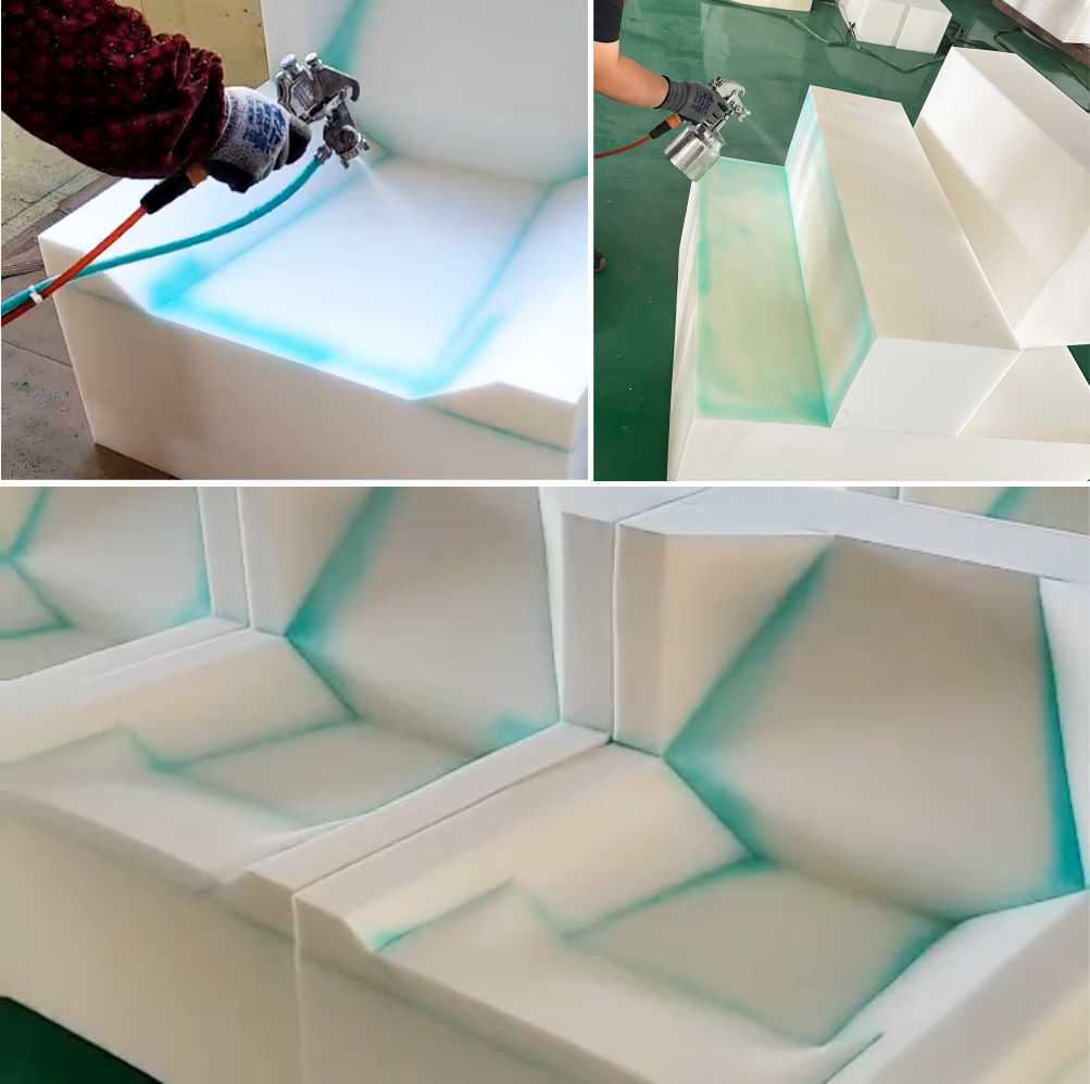 用途范围适用于沙发、座椅、床垫等家具加工企业,对海绵、木板 等透水性材质有优越的附着强度。