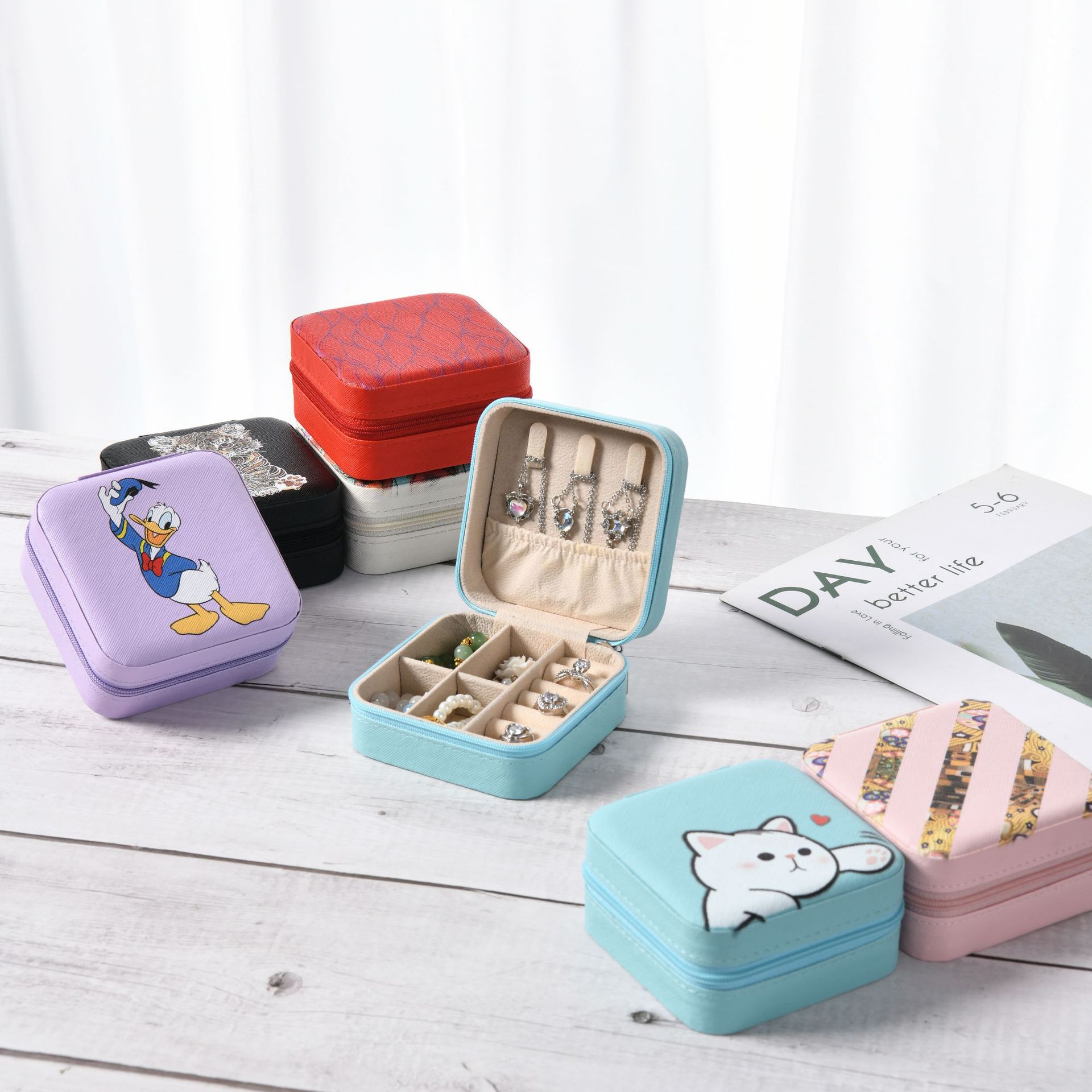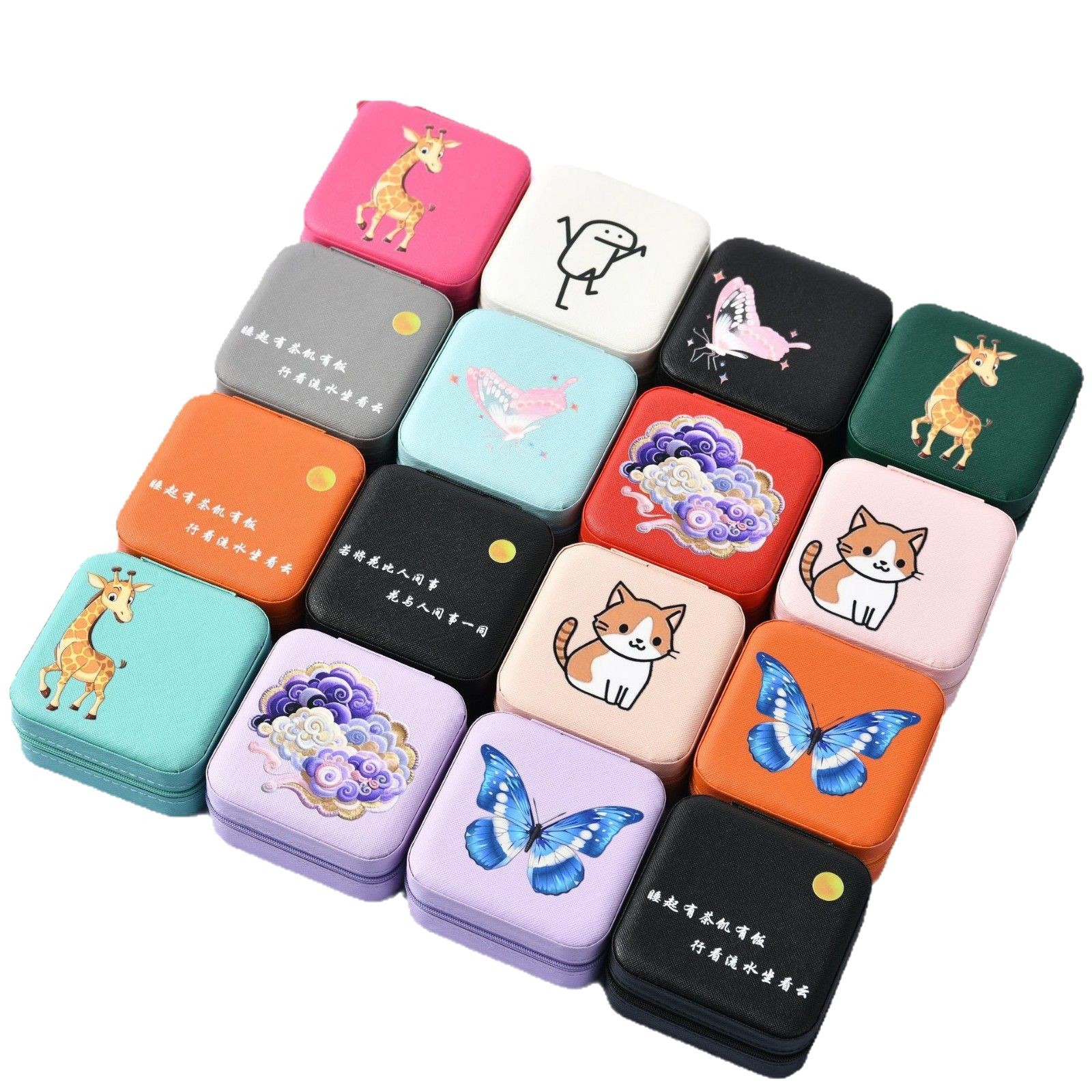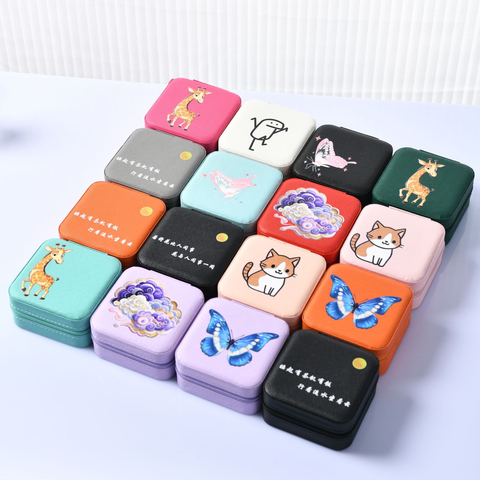 跨境供应多色卡通迷你首饰盒简约便捷式耳钉戒指珠宝小方形收纳盒
