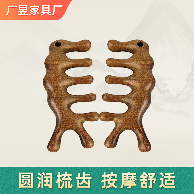 龙凤檀海马按摩梳子头部经络按摩器点穴梳头面部眼周木质刮痧梳
