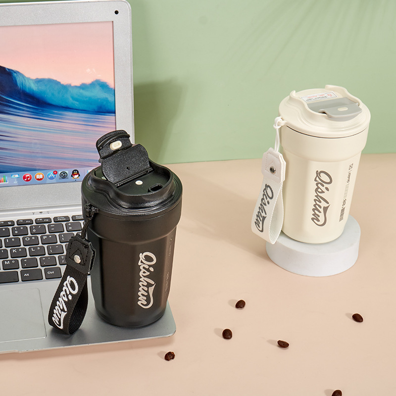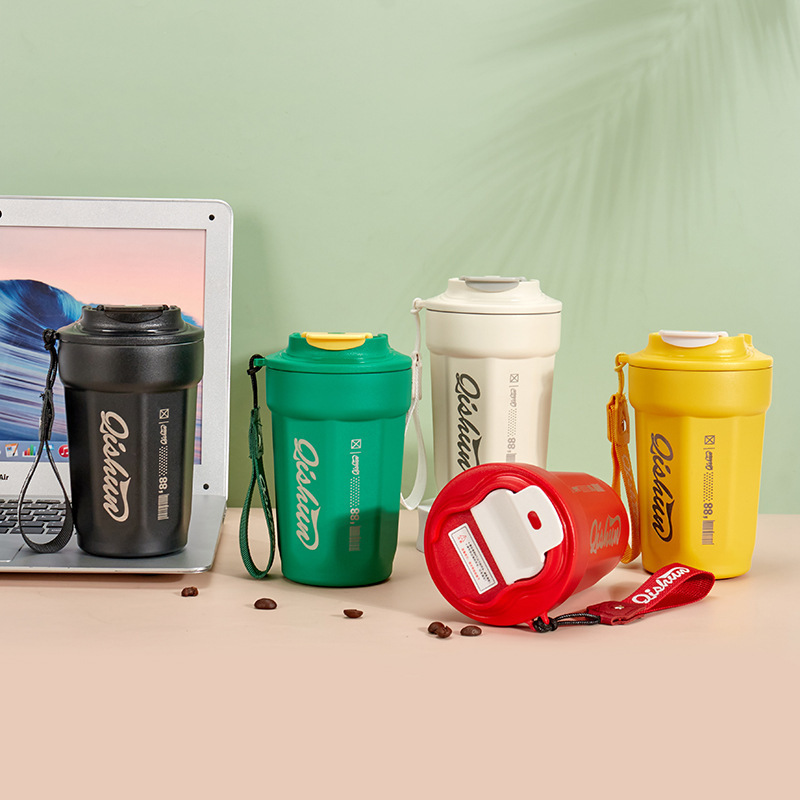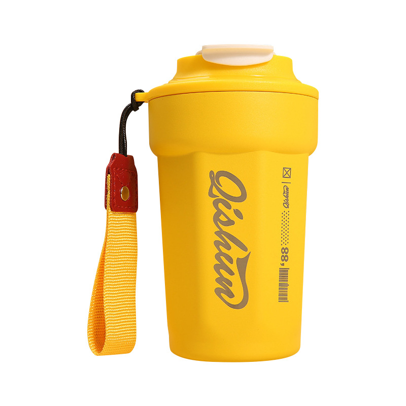 咖啡杯316不锈钢保温杯便携真空带提绳八角户外随水杯数显