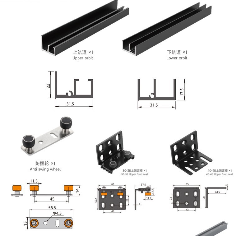 幽灵门隐形轨道五金配件无轨移门悬浮轨道铝合金滑轨吊趟门带双向